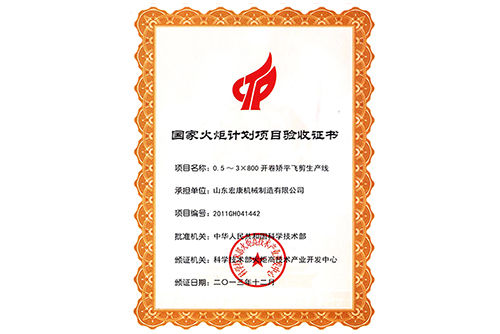 国家火矩计划项目验收书